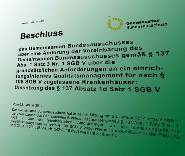 Der Gemeinsame Bundesausschuss (G-BA) hat in seiner Sitzung vom 23. Januar 2014 beschlossen, dass Krankenhäuser und Kliniken in Deutschland ein Risikomanagement- und Fehlermeldesystem einführen müssen. Bis wann müssen aber die Einrichtungen ein, umgangssprachlich CIRS genanntes System einführen? Der G-BA bezieht sich auf den § 137 Absatz 1d Satz 1 SGB V. Diese Vorschrift zur Verbesserung…